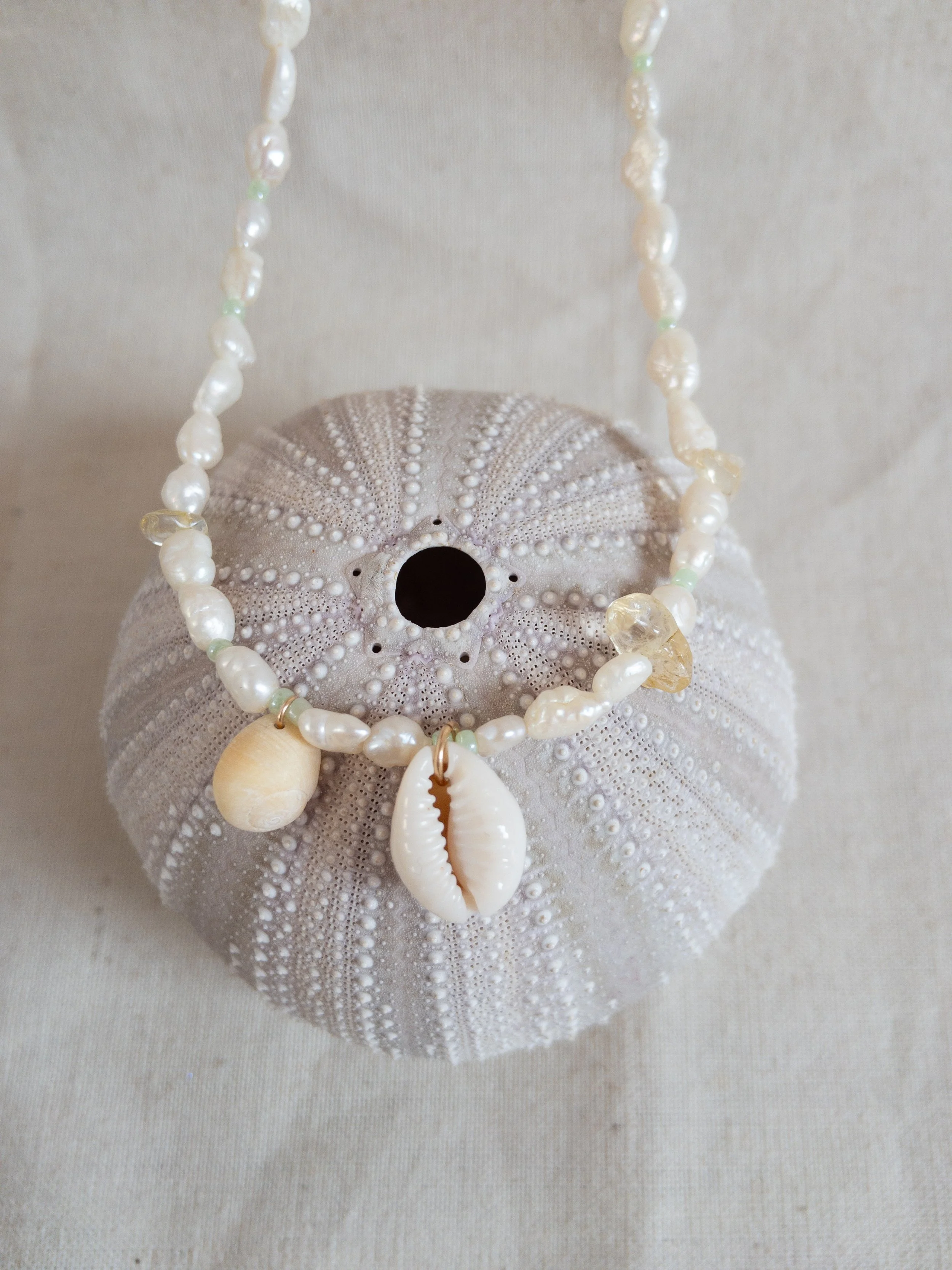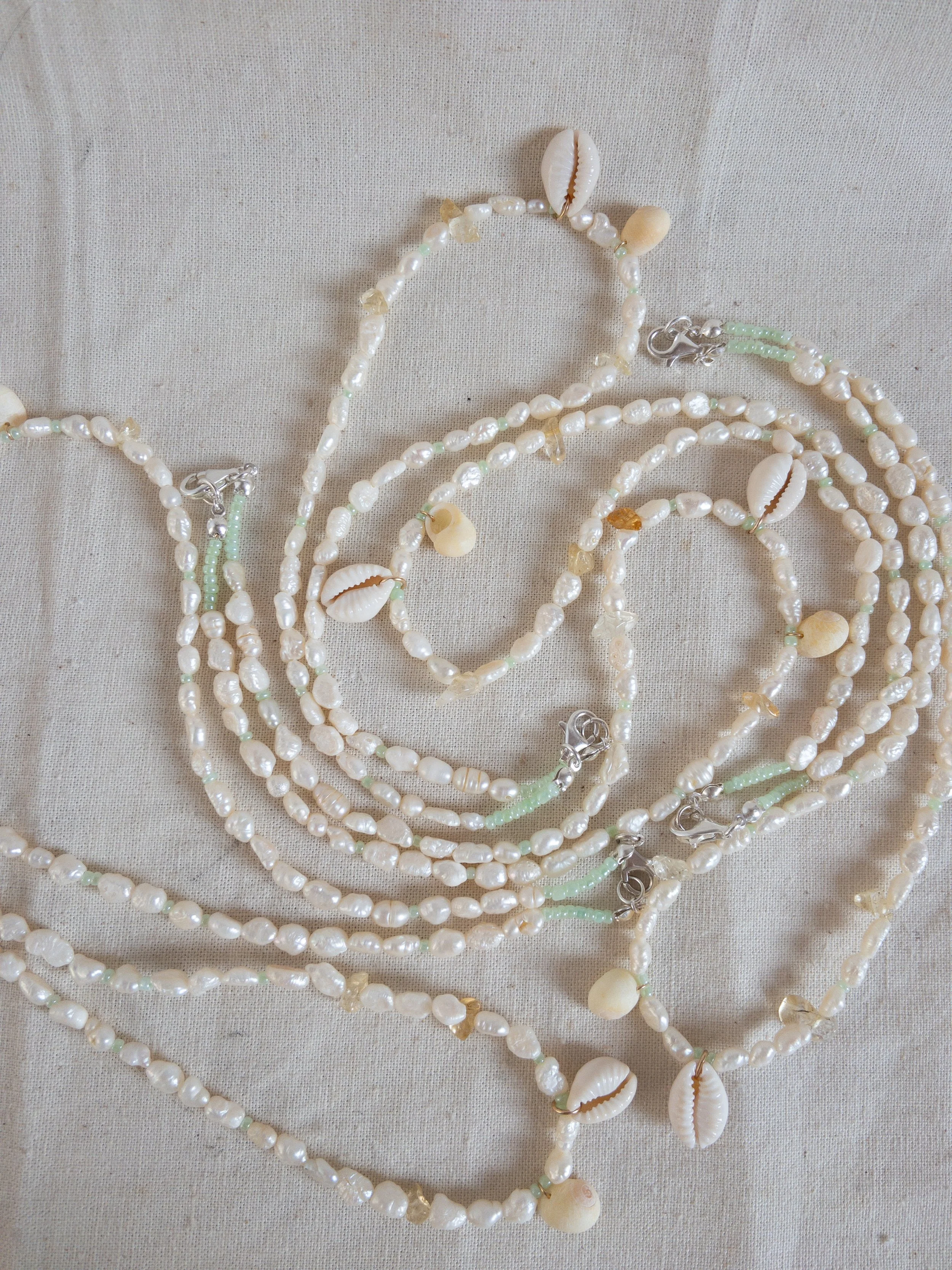 “Adrift, a folk pop ballad written by Alle, encompasses the untethered joy that surfaces when you finally let go to let love in again. Under the Sun wove the colour way of the Adrift album cover with the dreamy feelings of a salt drenched day, to curate the Adrift necklace.”